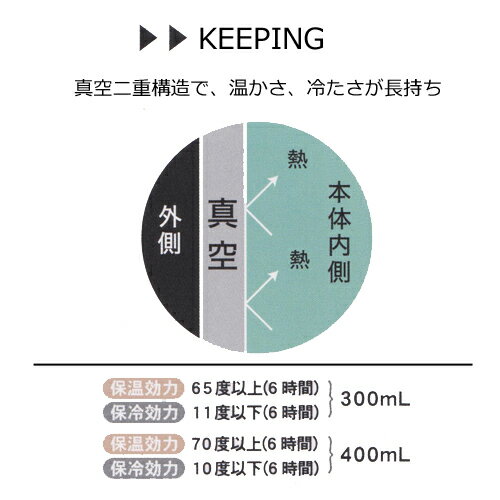 真空二重構造で温かさ、冷たさしっかりキープ! 飲み口もついています。