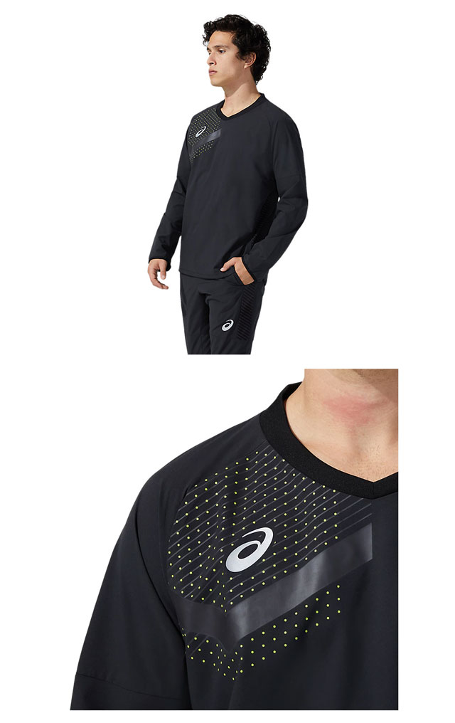 ネコポス アシックス スポーツウエア メンズ クロストップ asics 2101A125 長袖 ピステ はっ水加工のあるクロス生地 春夏の練習シーンに対応 トレーニングウエア