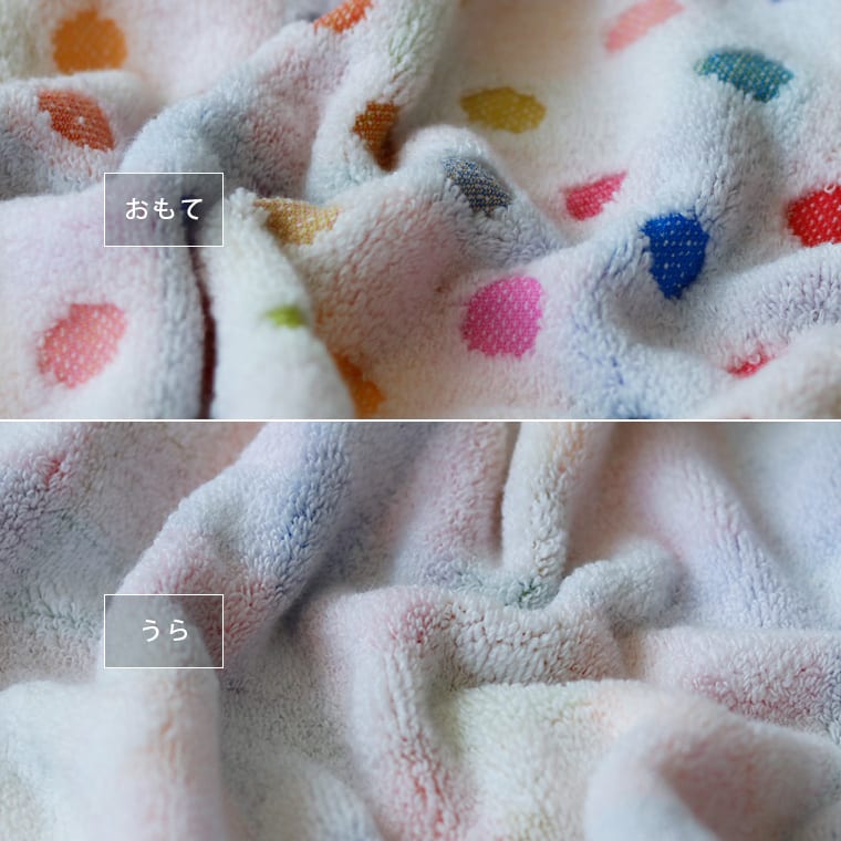タオルに25色の色糸を使うこと、実はこれって凄い技術力が必要で… ふわっふわ超やわらかタオル以上の肌触りにカラフルドット、 ポップカラーは見た目がかわいいだけじゃない、ハイスペックタオル。