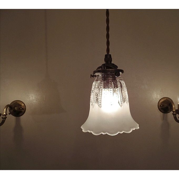 ガラスシェードと、横ネジ式のアンティーク色ツイスト灯具がセットになっています。