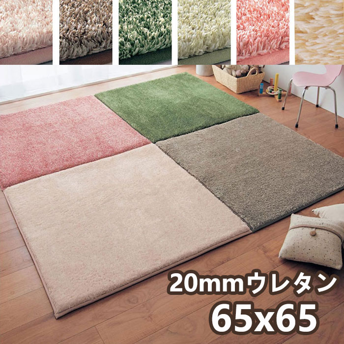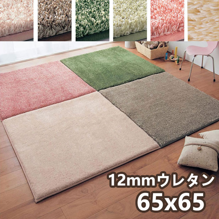 ラグマット 正方形 65 ジョイントマット 65cm 厚手 パズルラグ ユニットラグ ジョイントラグ 極厚 ウレタン カーペット 小さめ 洗える おしゃれ ミックス 防音 パネルカーペット 北欧 シャギーラグ 床暖房 マイクロファイバー 絨毯 ブラウン ピンク グリーン 冬用 下敷き