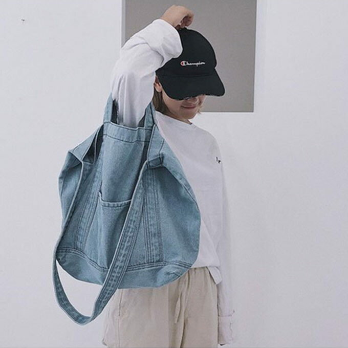 デニム トートバッグ 男女兼用 インディゴ マイバッグ ママバッグ お買い物 マザーズバッグ ショルダーバッグ ランチバック 大容量 軽量 ショルダー 肩がけ 無地 2way 通学 お出かけ 折りたたみ 斜め掛け ハンド カバン バック 軽量バック 携帯 ウォッシュ ライトインディゴ