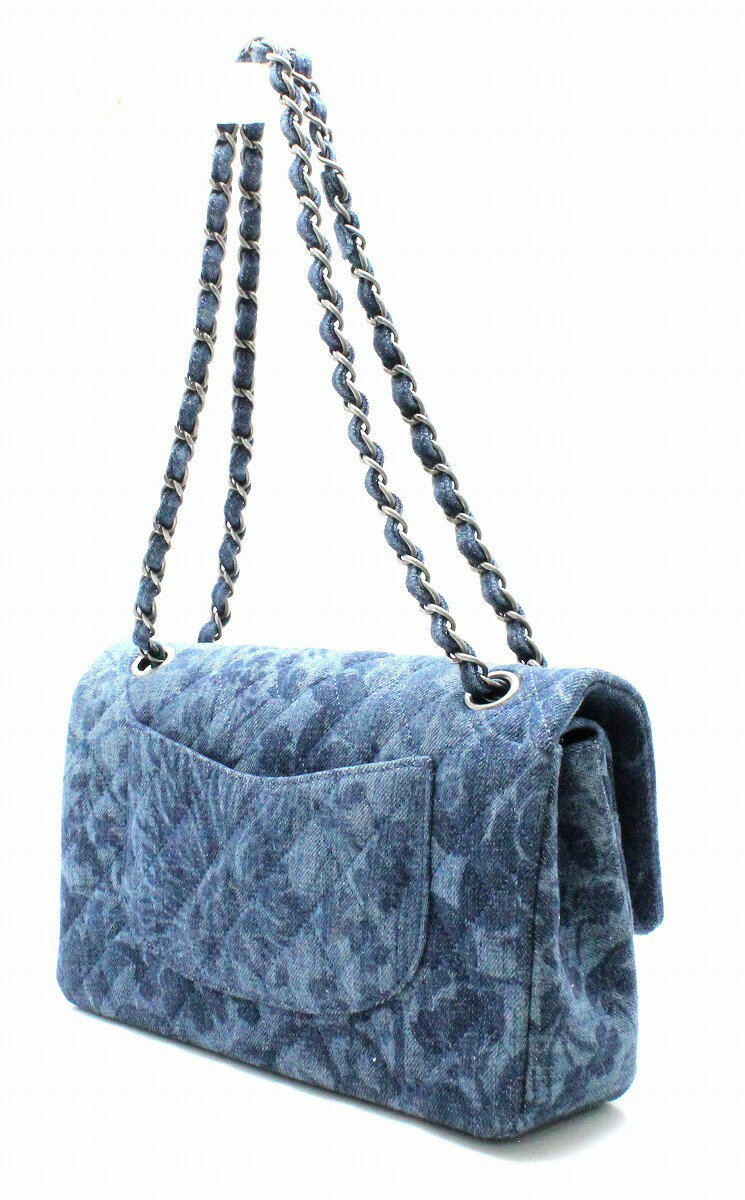 【新品未使用品】【バッグ】CHANEL シャネル マトラッセ デニム ブリーチデニム ダブルフラップ ダブルチェーン ショルダーバッグ カメリア フラワー ブルー 青 A01112Y60667【k】